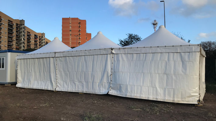 Allestimento di gazebo di varie dimensioni per installazione a breve o lungo termine. Possibilità di personalizzazione dei teli, montaggio su richiesta di pedana interna e impianto elettrico o quanto altro necessario per completare l'allestimento